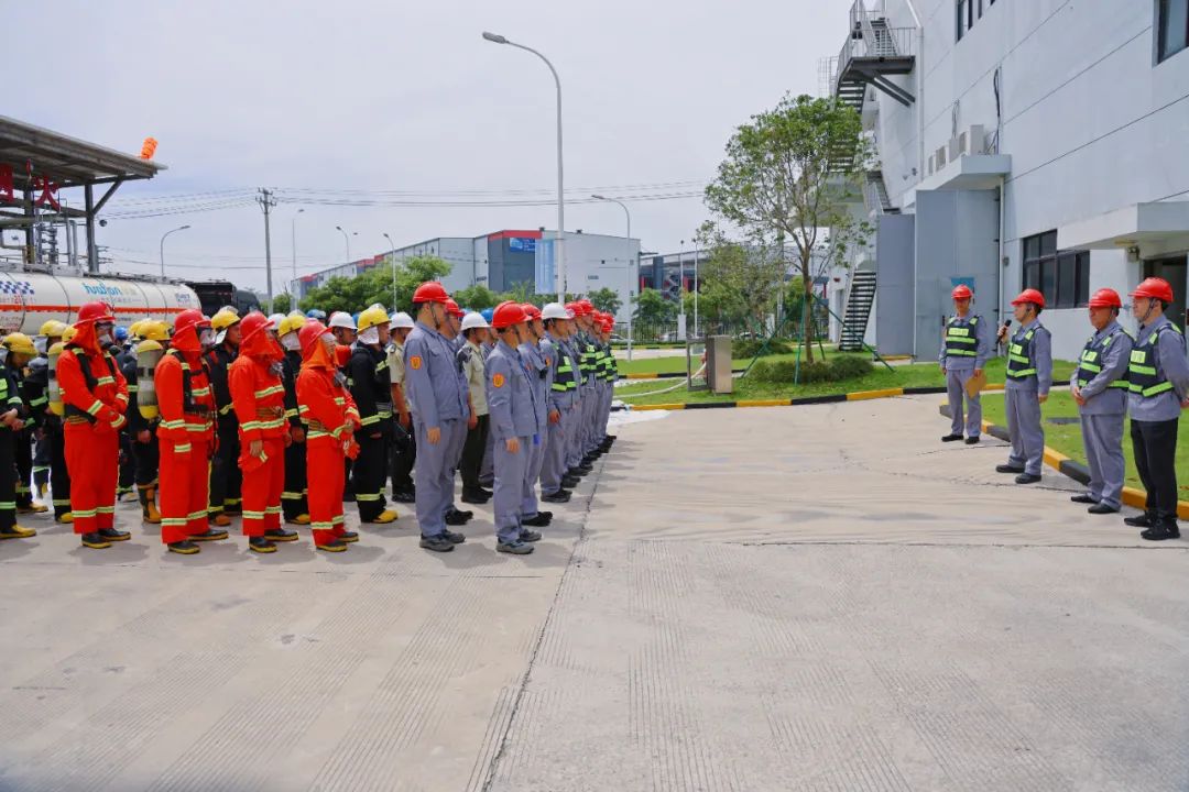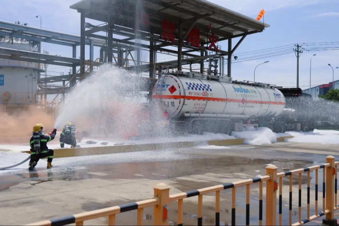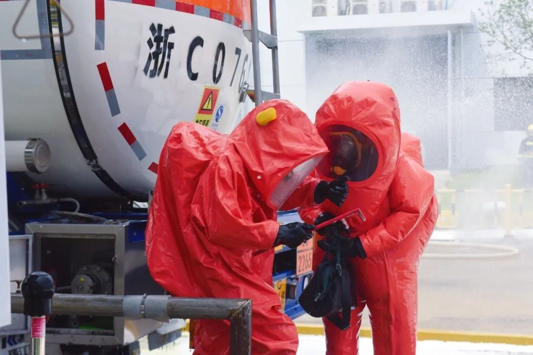 ]article_adlist-->演练现场,义务消防队、抢险抢修队、医疗救护队等多支应急队伍闻令而动。消防车喷射泡沫,全力压制火势;抢险队员们穿戴好专业装备,迅速前往泄漏点进行紧急处置;医疗救护队则携带急救设备,在现场严阵以待。