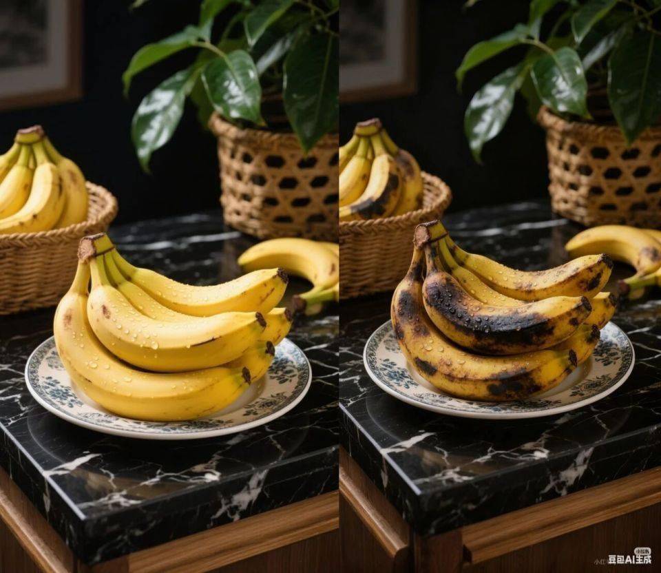 水果更是重灾区,也是电商卖家反馈遇到AI假图骗仅退款最多的品类。记者在豆包里上传一张香蕉图片,并输入“把图片里的香蕉P上一些腐烂的黑斑,变成蔫一点的状态”的指令,几秒之后,一张“腐烂”的香蕉照片便展现在眼前,黑斑分布合理与真实腐烂香蕉几乎无异,若不仔细甄别,很难发现AI修改过的痕迹。